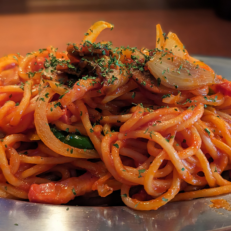 コロナ以前にもペペロンチーノを頂いた事があって汁気の多い独特なスタイルが好印象だったこともあってこの日はナポリタンと決めていた。
