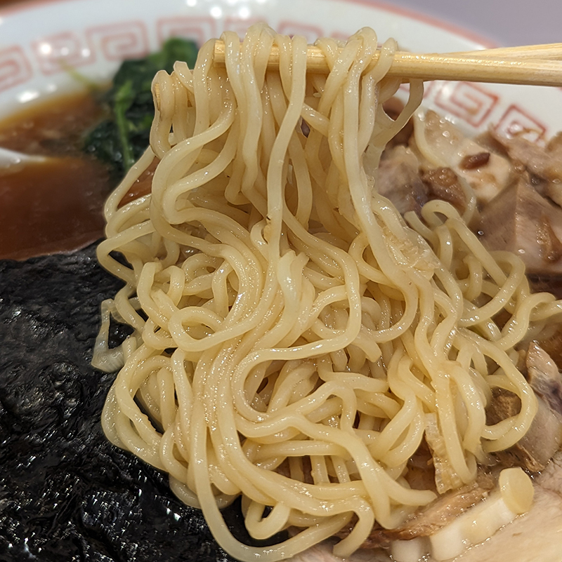 麺は中細タイプのストレート麺。プリッとした食感でスープとの相性もいい。