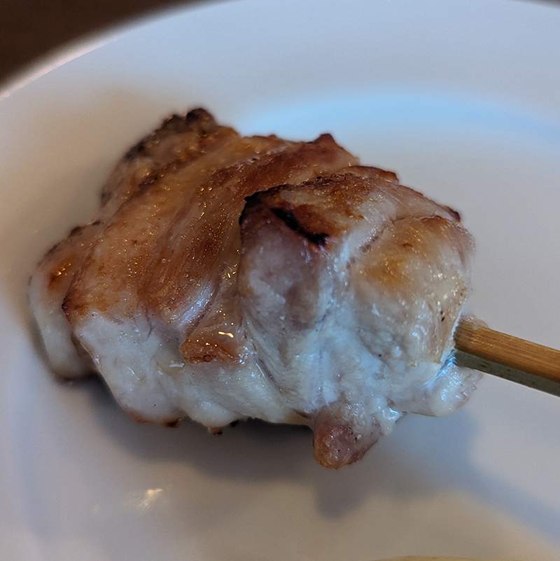 特に塩やタレの指定はできず、塩で焼かれたかしわが供された。身はふっくらと厚みがあり、皮目はカリッと香ばしい仕上がり。