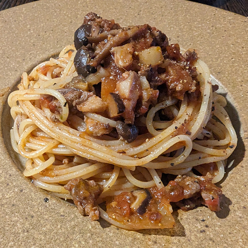 最後の〆にボロネーゼを。野菜の方が多くてボロネーゼらしい雰囲気ではないがちゃんと手作りであることが感じられる優しい味。
