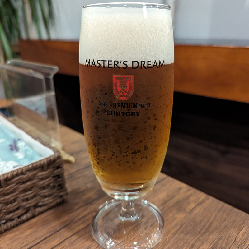 まずは生ビールを注文。グラスを傾けながらメニューに目を通す。