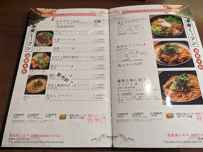 米麺と書いてミーフン。これも湖南を代表する料理のひとつ。自家製麺で100%無添加の麺を使用している。そして汁物、炒めもの、汁なしなどメニューのバリエーションが豊富だ。