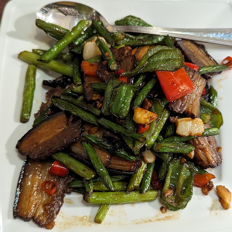 腊肉とにんにくの芽の炒め