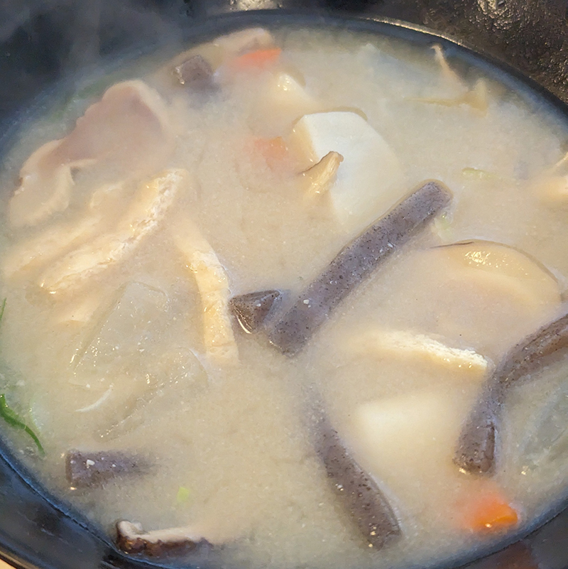 味噌汁は具沢山なけんちん汁と朝からボリューム満点。