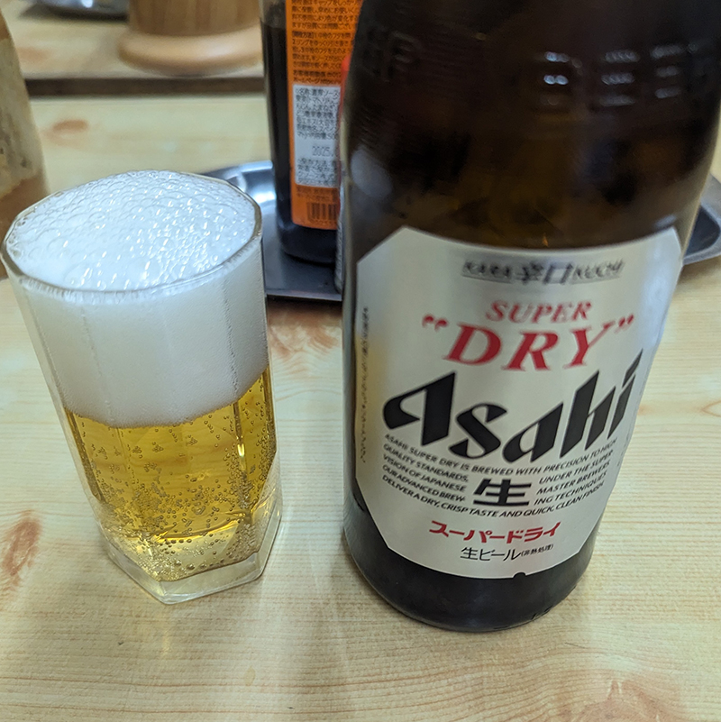 まずはビールと合いの手にマカロニサラダを。170円という値段が嬉しい。