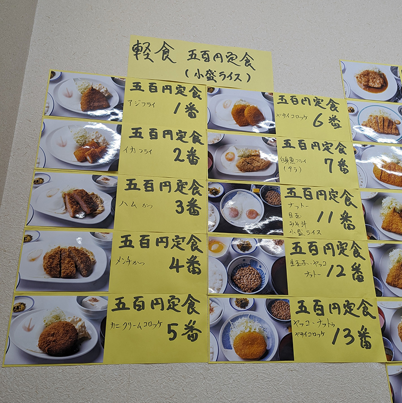 メニューは肉、魚、揚げ物まで種類が豊富で量が少なめの500円の定食も用意されている。大半の方が定食を頼んでいる様子だが、中には、単品を注文して飲んでいる方の姿も。確かにそうした方が色々と試せるので今回は単品で注文した。