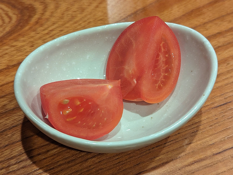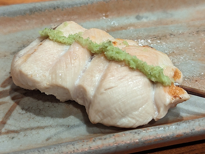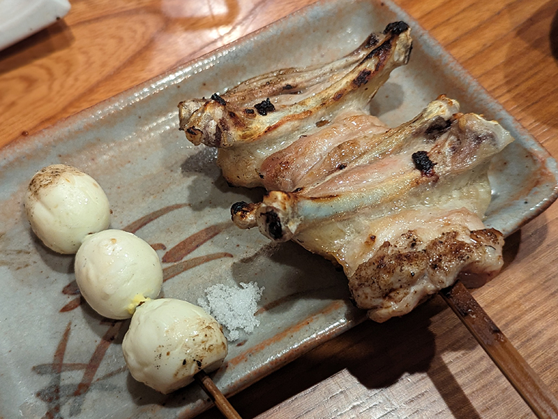 やきとりはメニューにある12本。予約時に言われていたことだが、コースがひと通り終わるまで2時間半ほど掛かるらしい。これでそんなに時間が掛かるものなのかと疑問に感じながらスタート。