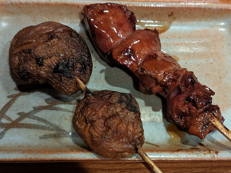 結果的にお店を出るまでに2時間半弱掛かった。しかし、最初の料理が出てくるまでに25分。そこから最初の串が出てくるまでに更に20分。その後も長いと串間が20分掛かることもあり、流石に間が空きすぎる。これだけ空くと間が持たずと酒量が不毛に増えていくのが難点。じっくりと火を通していることも一因かも知れないが、夫婦だけで切り盛りしているとは言えもっと効率的に出来そうに思えてならない。