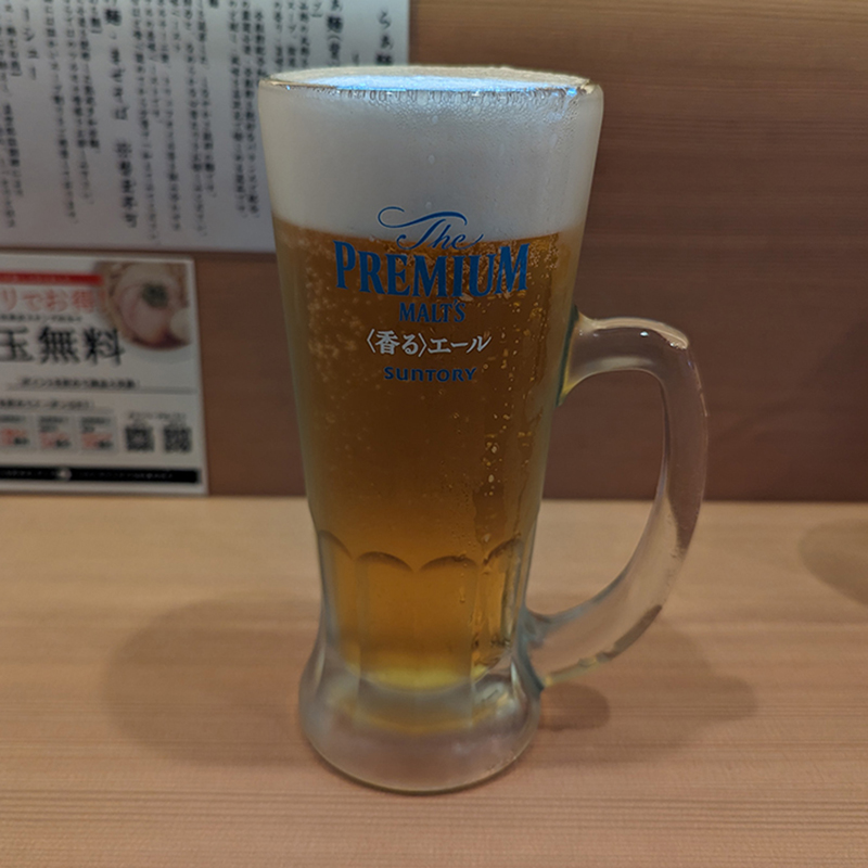 まずはビールで喉を潤す。残念ながらおつまみ類は用意されていない。