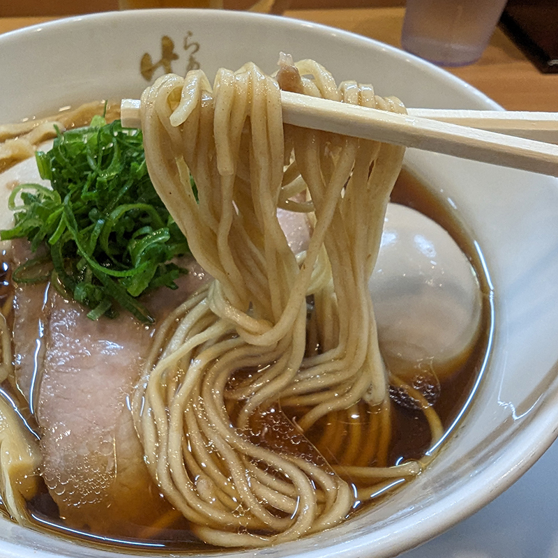 スープは透明度が高く、鶏油が表面の層を覆っている。目黒にもこれとよく似たスープを出すお店があるのだが、同様の変な甘さが舌に残る。どうもこの味には残念ながら馴染めない。