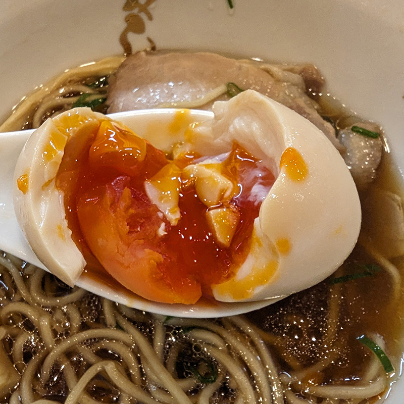 具材のチャーシューや苦手としている鶏チャーシューも臭みがなく出来が良いし、穂先メンマも美味しい。それ以上に煮玉子は半熟加減が良くこれならばわざわざ頼む価値がある。