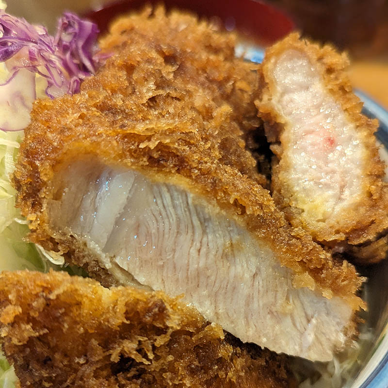 とんかつそのものの火の通しがいい。断面からも肉汁が滲み出てて、しっとりと仕上がっている。