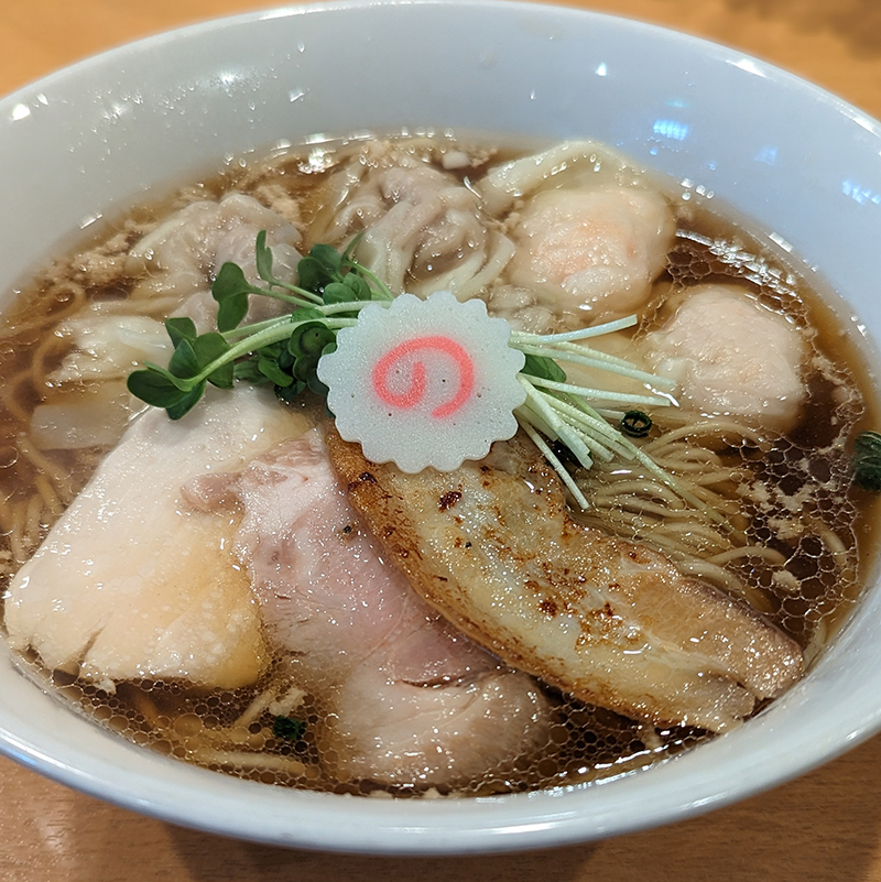 肝心のワンタンは肉と海老の2種類が入っている。肉は下味がしっかりとしていて海老は食感のプリプリ感が楽しくどちらも秀逸。