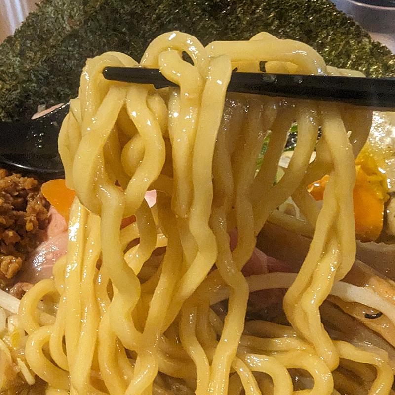 プリッとした歯ごたえの中太麺が濃厚スープを受け止める。
