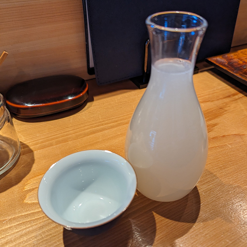 ここで堪らず日本酒にスイッチ。こちらのお店でいつも頂く島根の天穂だが今回はにごり。甘すぎずすっきりとした酸味が料理ともよくマッチしている。