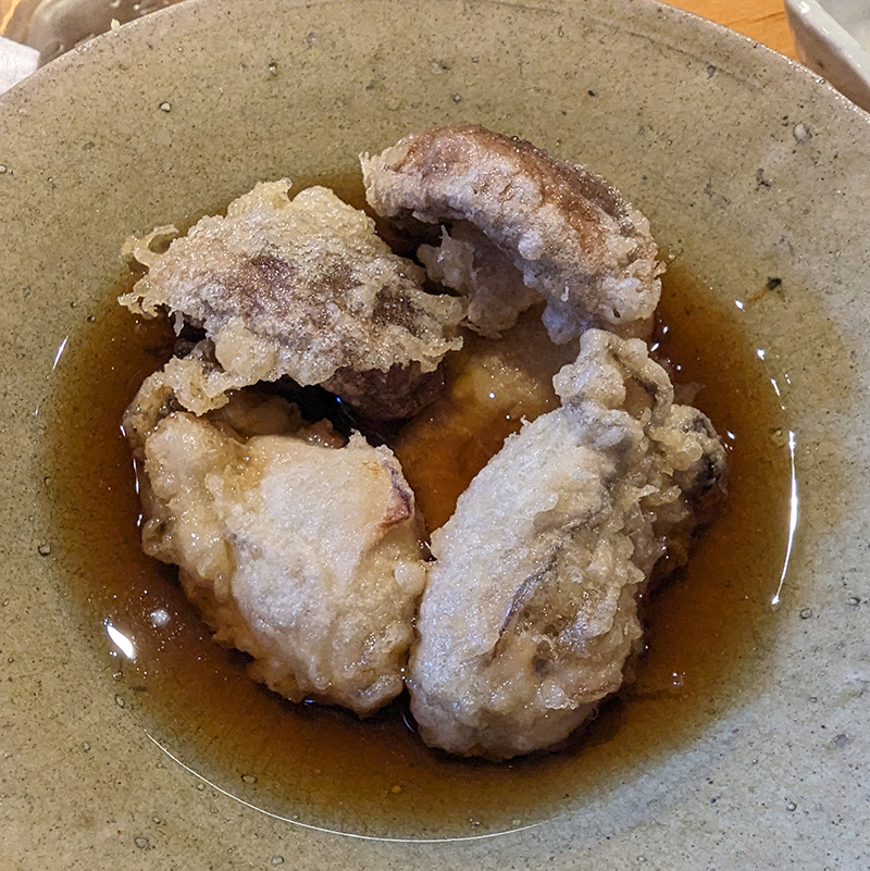 盛合せの最後を飾るのは椎茸の天ぷら。これだけのつまみが付いて3,000円は安く、内容もクオリティも十二分に満足がいく。今回は最初から天ぷら気分だったこともあって、更に天ぷらを追加。