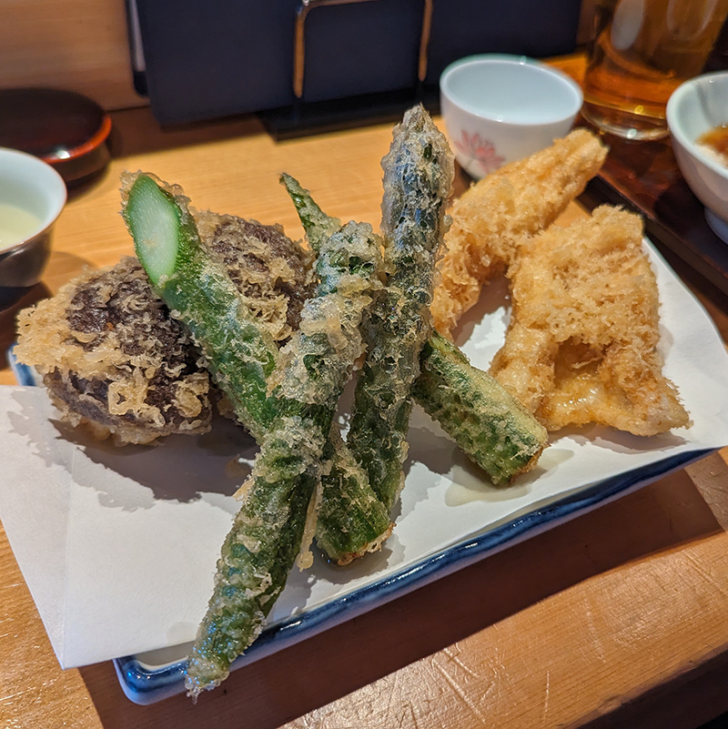 そば屋としては申し分のない天ぷらで特にアスパラが秀逸。