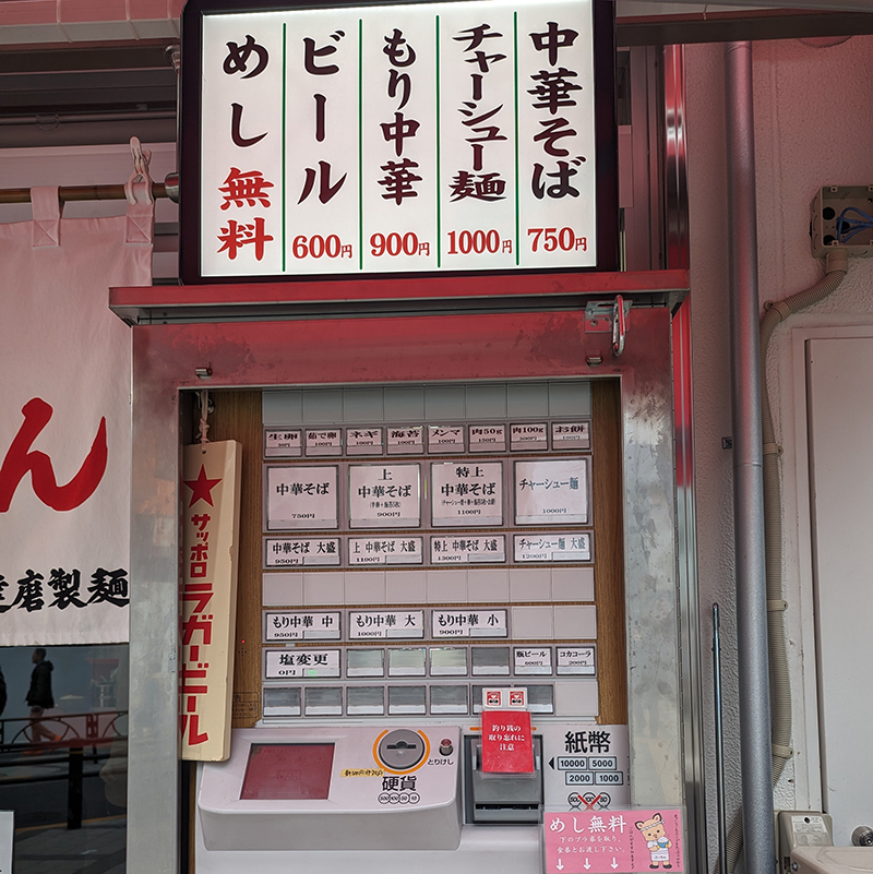 JRの錦糸町寄りの出口を出て線路沿いを左に2分ほど進んだところにある。お店の外に設定された券売機で食券を購入して店内に。