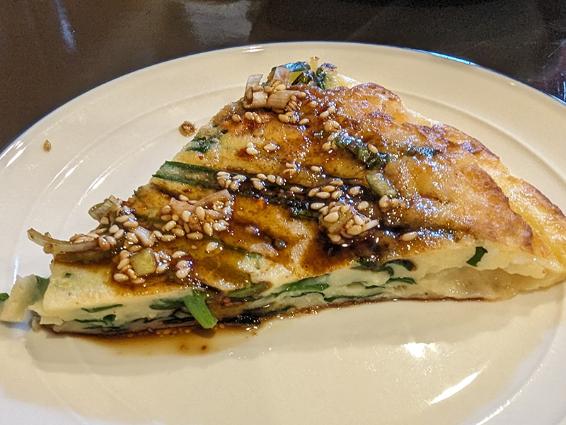 わざわざ韓国から取り寄せた粉を使用しているので全くの別物だという。確かにふんわりとした仕上がりで旨い。余った分はテイクアウトにもしてくれる。