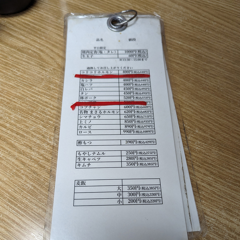 ほぼひと通りのメニューを頂いたが、オススメはしまちょう、白レバー、塩はつ、カルビ、上ミノと言ったところ。いずれも素材は新鮮でコスパが高い。尚、ホッピーの中にはご注意を。