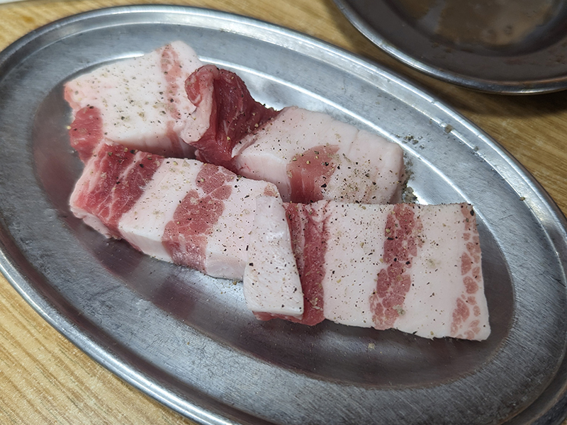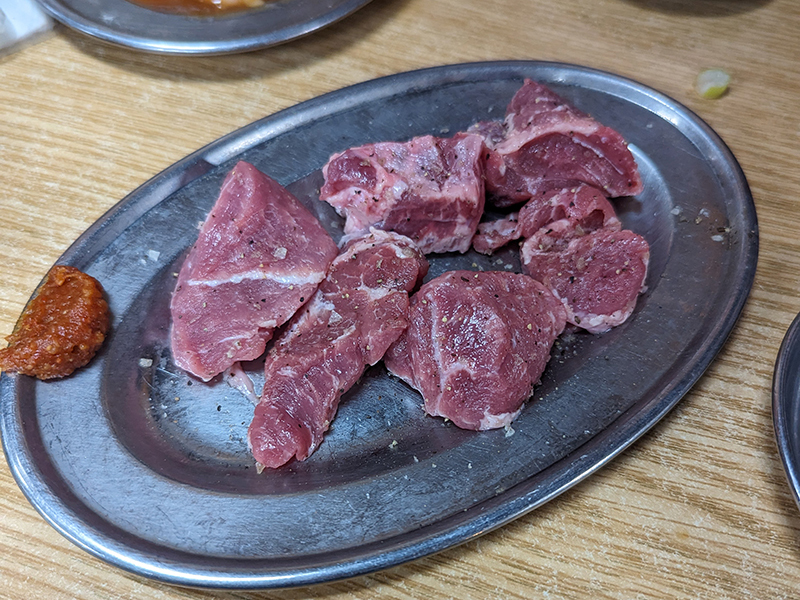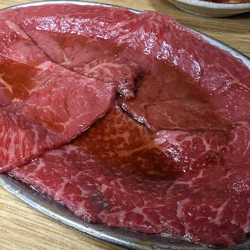こちらはランチでもお馴染みのカルビ。薄い肉がドーンと豪快に盛られているのが特徴。とても柔らかく肉そのものに旨味がある。