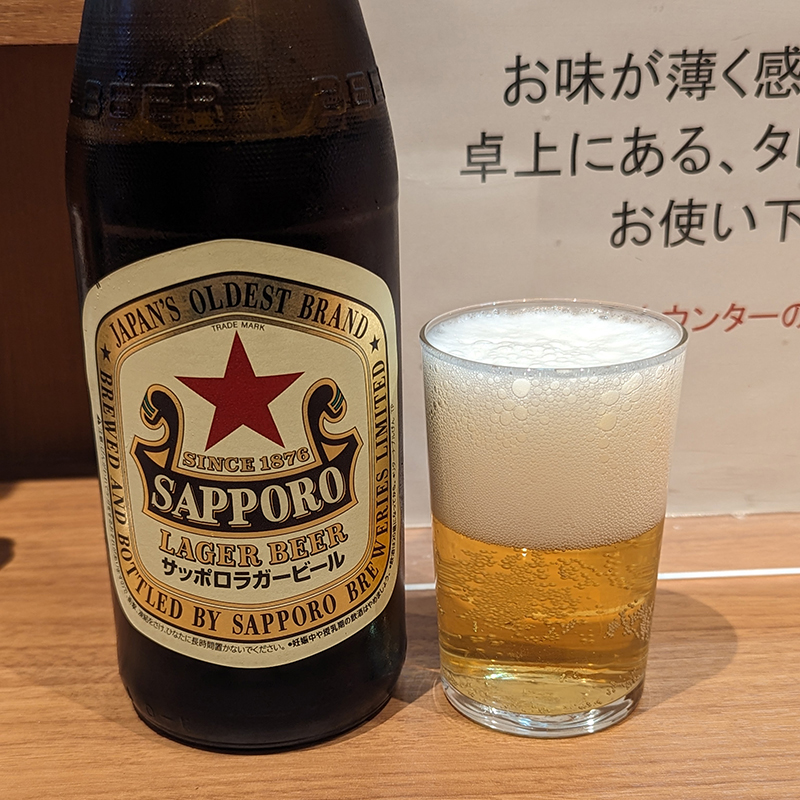 まずはビールを頂く。つまみメニューは特にないのは残念。