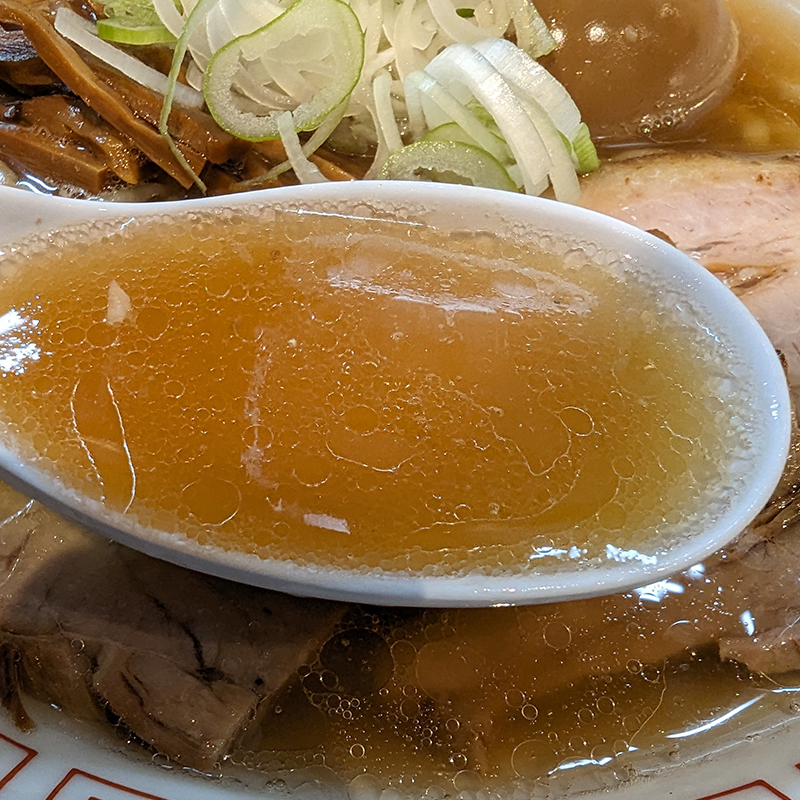 見た目の印象の通り、醤油が支配するタイプではない。優しい穏やかな味わいだが、出汁の旨味でしっかりと下支えされているので全体的にはウェルバランス。動物系と海産系の出汁のバランスもいい。