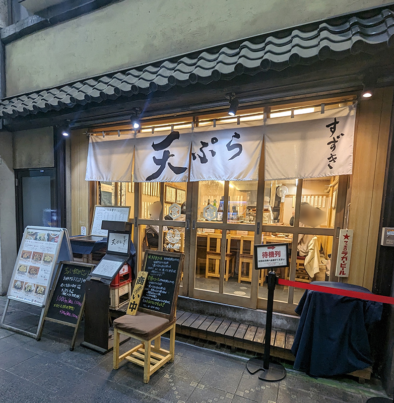 一軒目のお店を後にして近くにあるこちらのお店に。暖簾を見ると以前、人形町で頂いた天ぷら屋と同じデザイン。調べてみるとこちらが本店で人形町店が支店になるらしい。