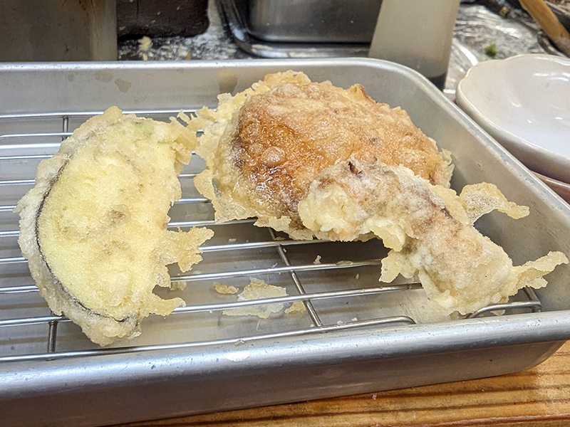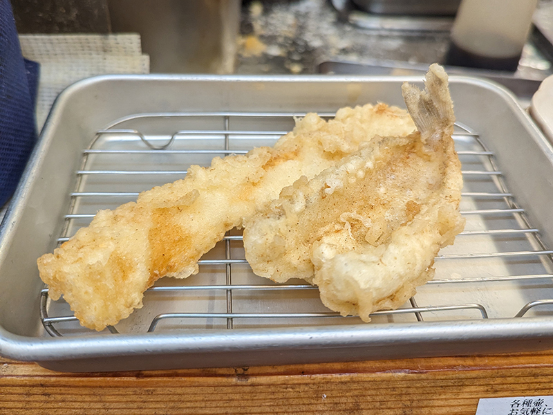 続いて、穴子と鱚。穴子が320円に鱚が240円と値段は良心的。値段を考慮すればどちらもまずまずの出来で、特に鱚は身がふっくらとして揚げ具合もいい塩梅。