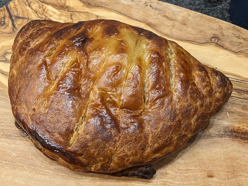 ムッシュKとはオーベルジュ・オー・ミラドーの勝又シェフのことで、彼の特製のミートパイ。具材には挽き肉や栗、レーズン、赤ワインを混ぜたもの。型崩れのしないパイ生地でしっかりと歯ごたえがある。具材は野趣溢れる味わいで赤ワインとの相性がいい。