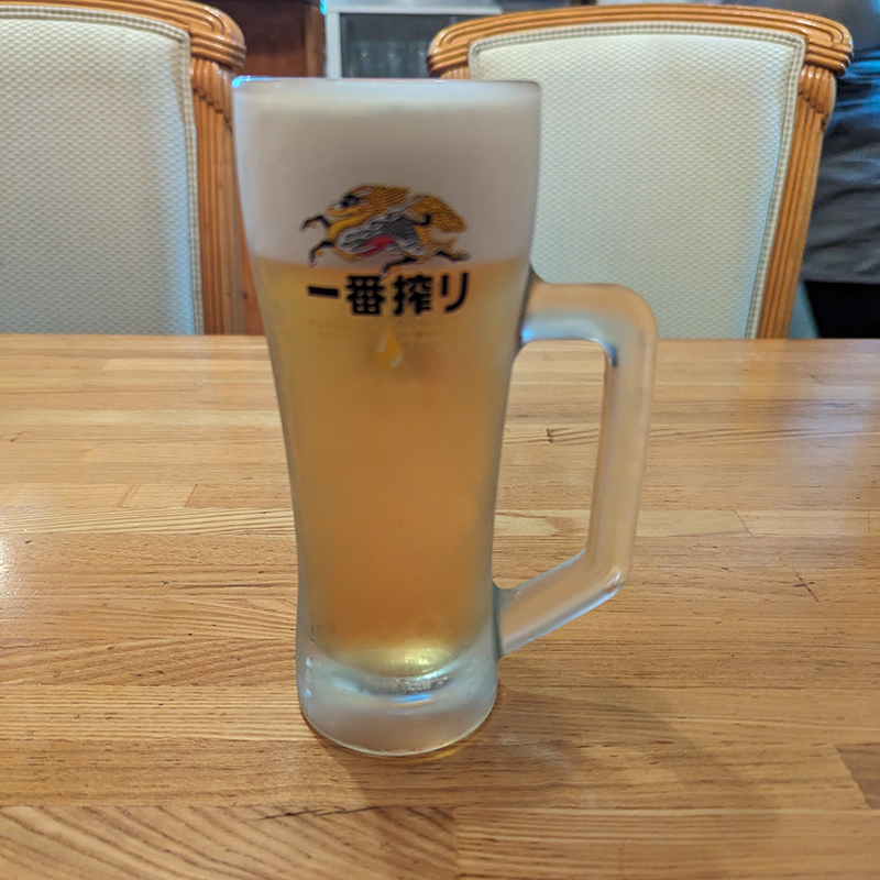 ランチメニューは看板にも書かれているようにネパール料理とインド料理の両輪を供する。今回はダルバートを。まずはビールで喉を潤す。