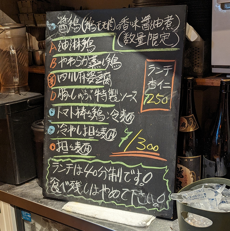 黒板に書かれたメニューから1つを選ぶ。一品料理から麺類まで全部で8種類ほどの中から選択できるので目移りしてしまう。