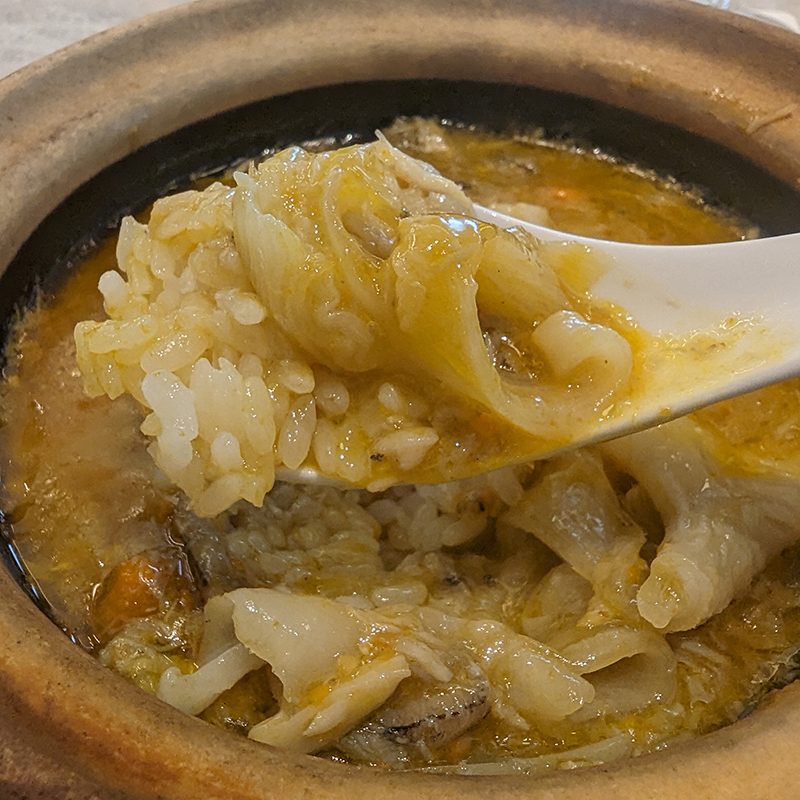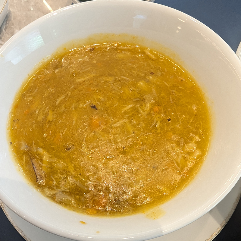 フカヒレは想像以上にしっかりと入り、上海蟹の旨味が凝縮されたスープが濃厚な味わいで旨い。