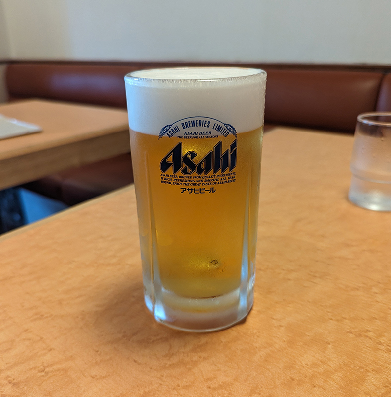 まずはビールで喉を潤す。