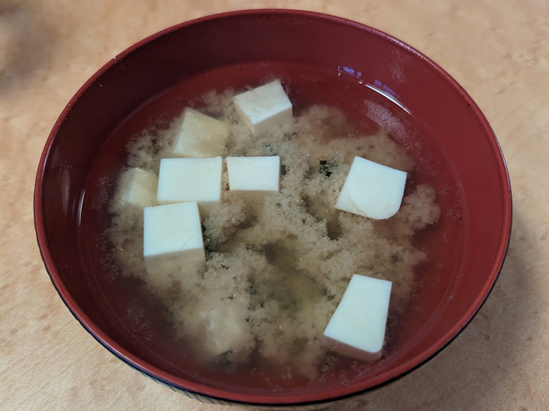 セットの味噌汁。セットにはドリンクが付いてくるのだが、コーヒー、紅茶、味噌汁からの選択肢となる。