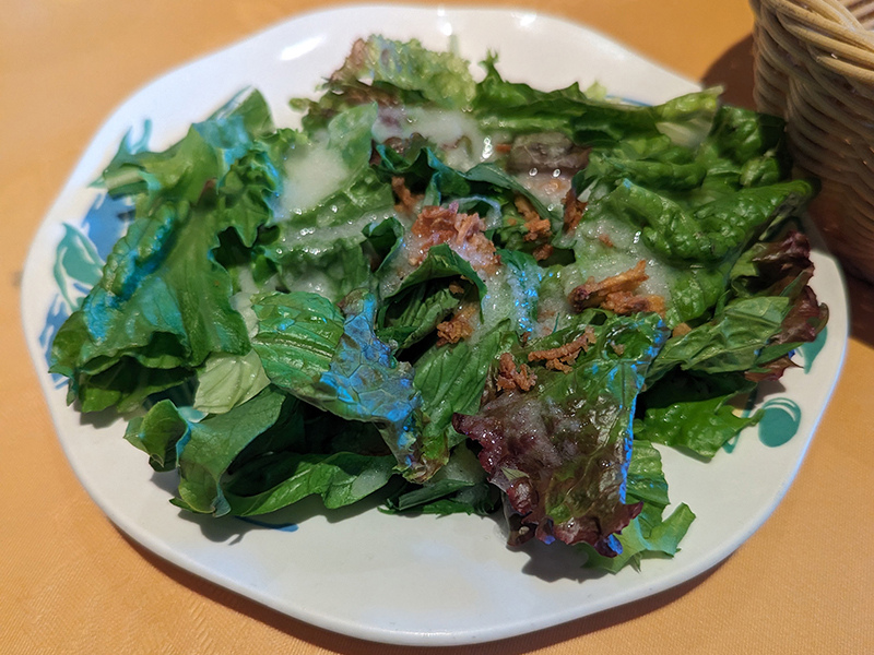 まず最初に供されたのはサラダ。申し訳程度ではなくしっかりとボリュームがあるところが嬉しい。ビネグレットも自家製でバランスがいい。