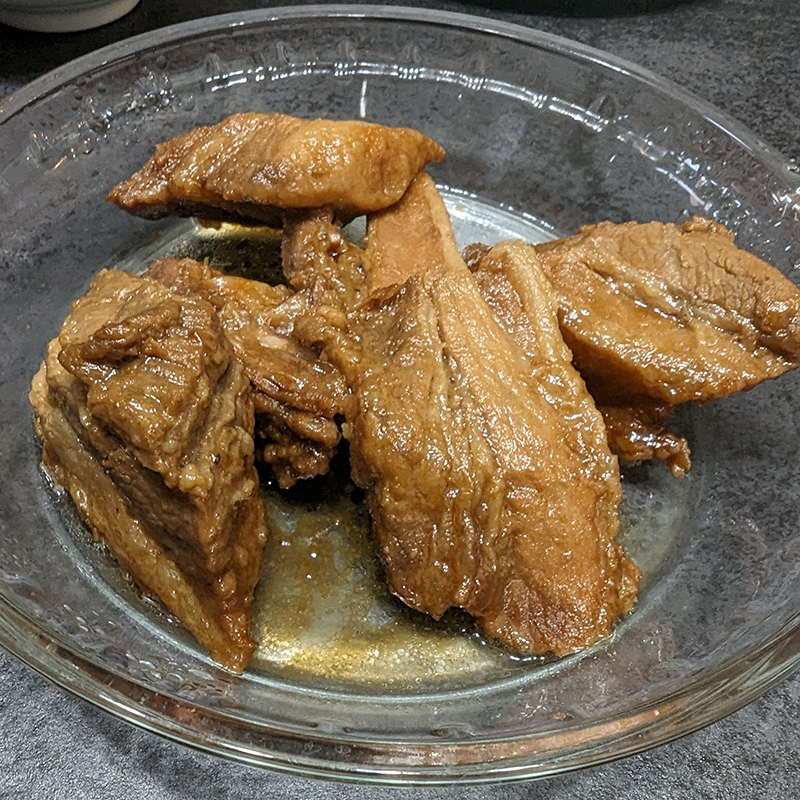 気になっていたお惣菜の中から豚バラの煮込みと豚足をテイクアウトで頂いた。