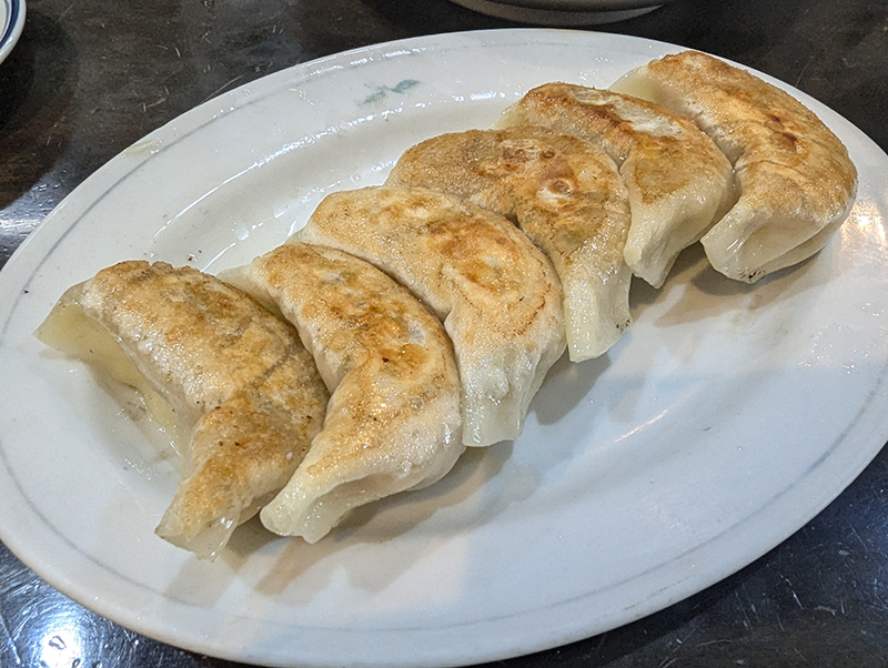 こちらをチャーハンの合いの手に頂いた。割と大きめの餃子が6個と結構なボリューム感。餡は野菜中心でペースト状に細かく刻まれていているので食感が滑らか。昔ながらの餃子らしい素朴なおいしさ。