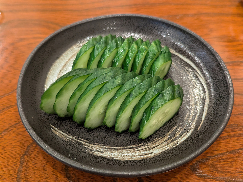 やきとりの合いの手として注文したきゅうりの糠漬けが最初に供された。ほどよい漬かり具合でやきとりの合いの手としてちょうどいい。結構量があるのも嬉しいところ。