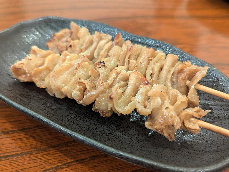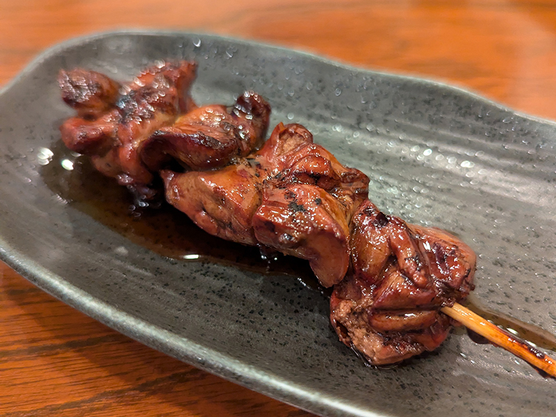 やきとりは全部で5種類を注文。夫婦で切り盛りしているらしく、混雑していると料理の提供には時間が掛かる。お通しのインパクトからすると全体的に少し焼きが甘い印象。タレも甘めで可もなく不可もない。