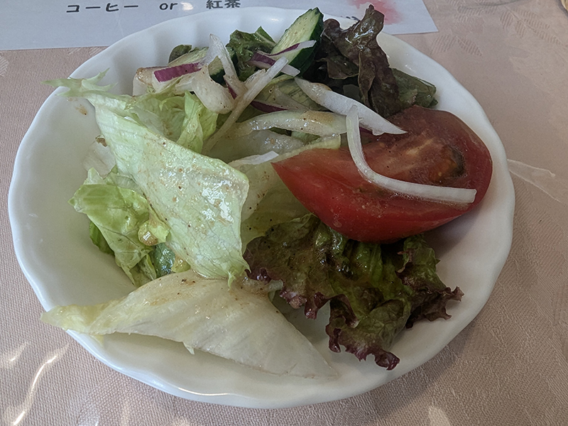 まずはじめにセットのサラダが供された。自家製ドレッシングの酸味が爽やか。