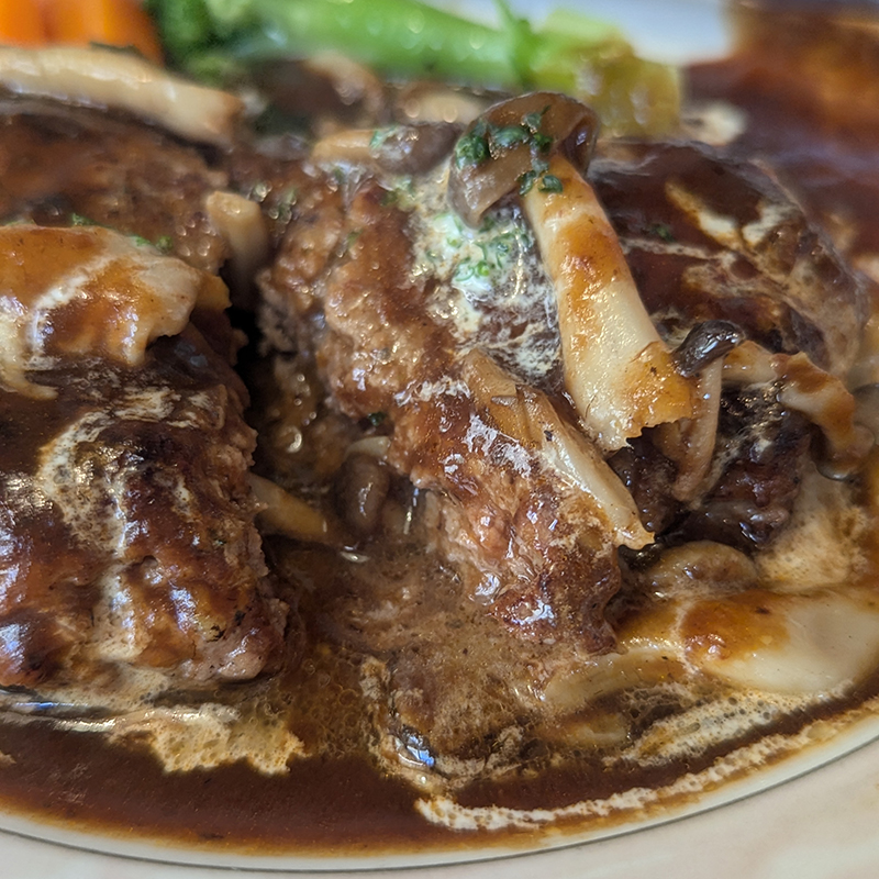 自家挽牛肉ハンバーグ デミグラ木の子ソース