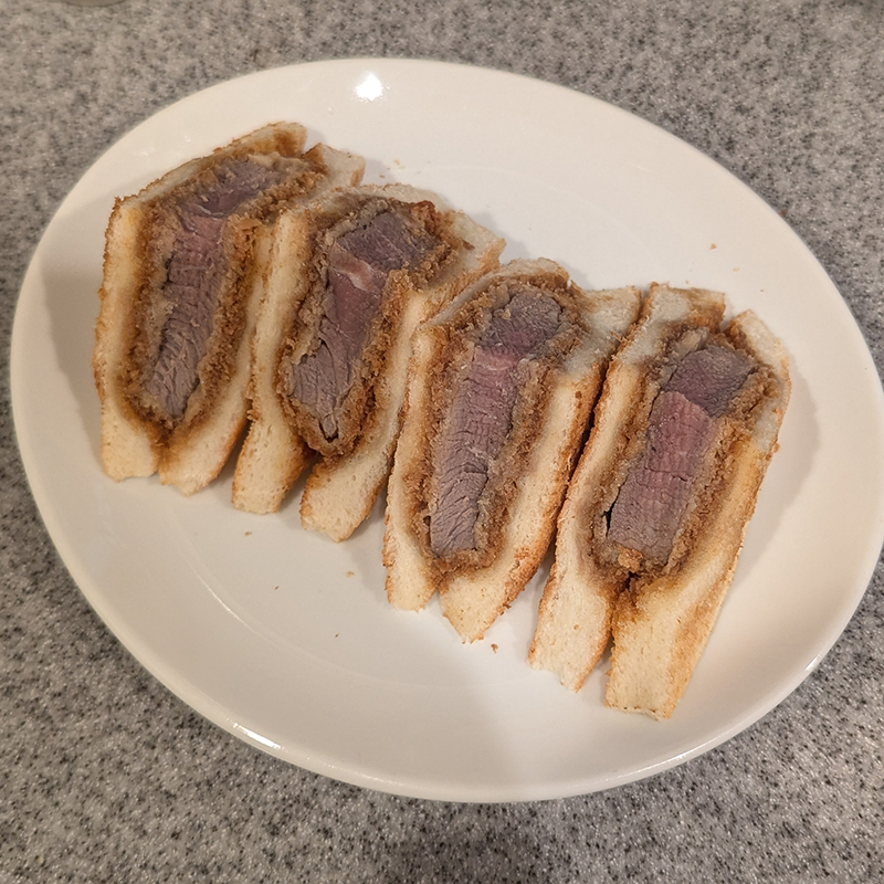 こちらはテイクアウトで頂いた。肉厚でソースがトーストにも染み込んで出来立てとは違った美味しさ。