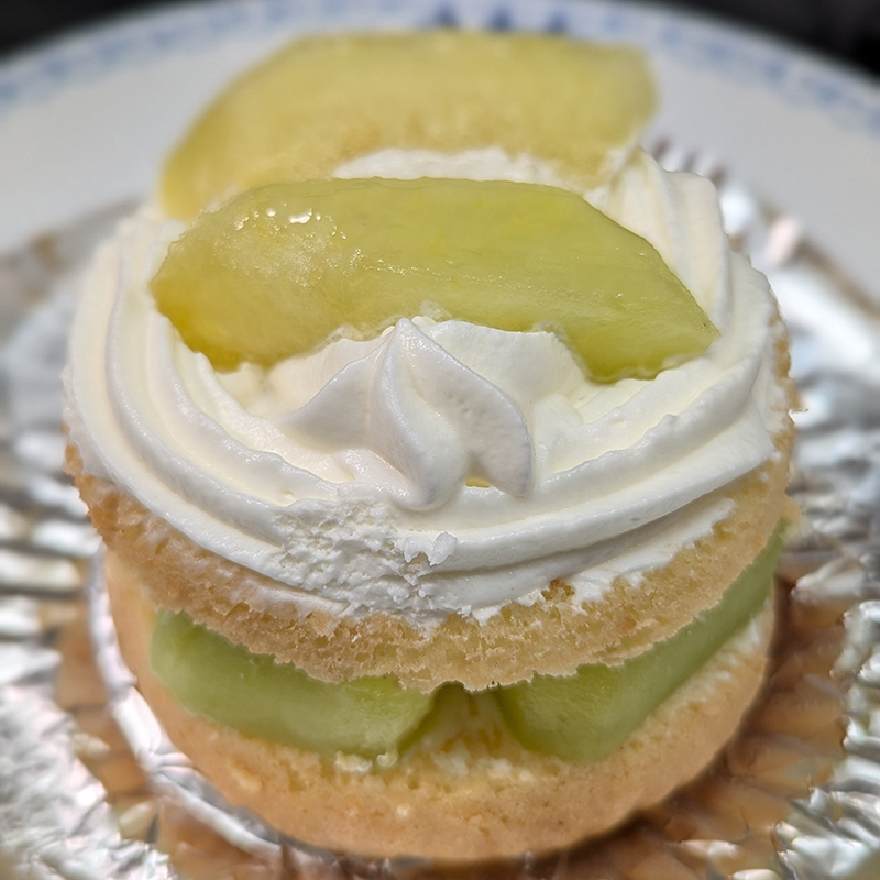 季節のケーキからはこちらのケーキを購入した。サンドというだけあってたっぷりの生クリームをメロンがサンドしている。メロンは熟しておらずやや固めの食感。少し塩を足すと甘みが増していい塩梅に。