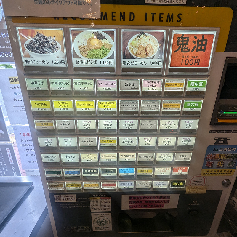 券売機を見ると台湾まぜそばと鬼油が加わっていたものの、それ以外は以前と変わらない様子。
