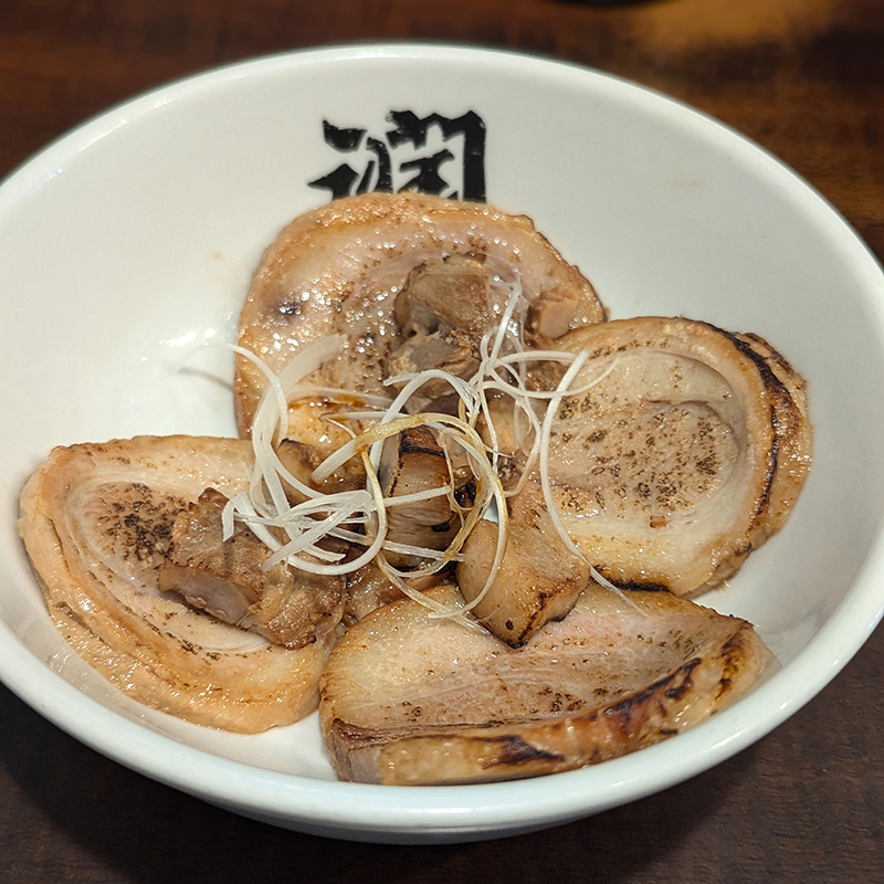 チャーシューはバラ肉を少し炙ったものを出してくれる。脂分が多いので単体で頂くにはかなり重い。