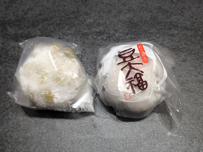 いつもなら豆大福のみを頂くところなのだが、ずんだ大福の評判も高いので両方試してみることに。