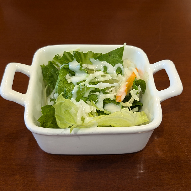 先行してサラダが登場。中国料理でサラダは珍しいが、チャーハンは基本炭水化物のみなので嬉しい。
