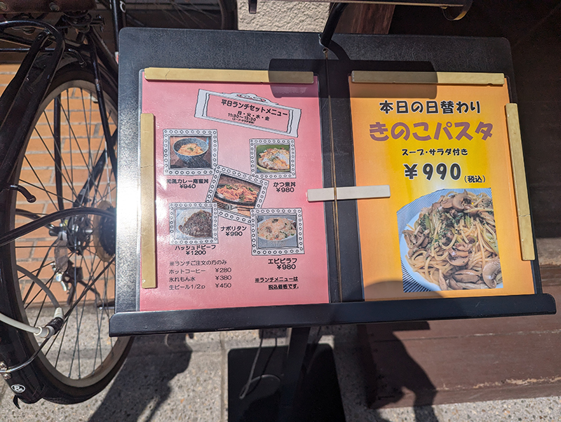 閉店の話を知って平日のランチに訪問。土曜日とは異なり、食事はランチメニューからしか注文が出来ない。この日はカルボナーラの気分だったのだが、メニューになかったので同じパスタから注文した。