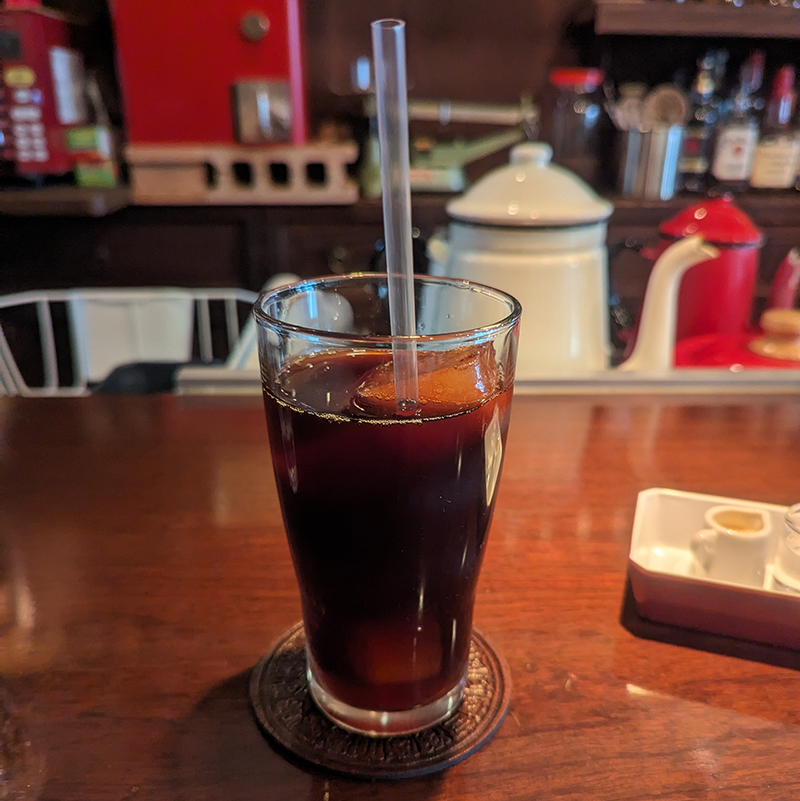 こちらは別の日に頂いたものではあるが、アイスコーヒーは一度ドリップしたコーヒーをシェーカーに入れ、氷の塊を滑らせて冷やすランブル譲りの作り方は健在。